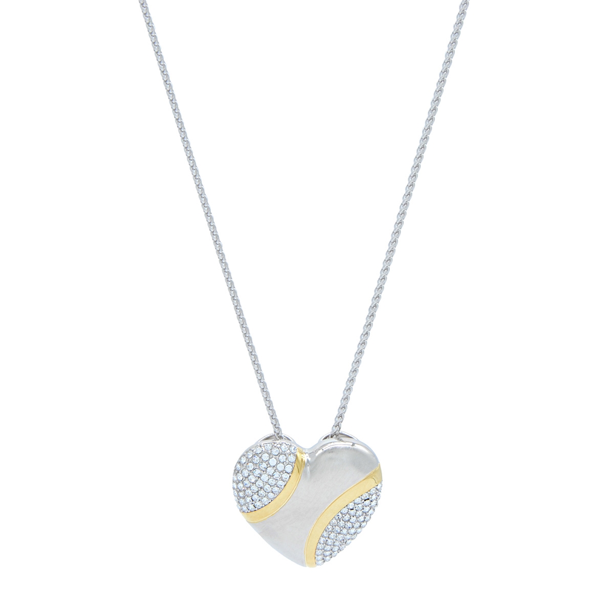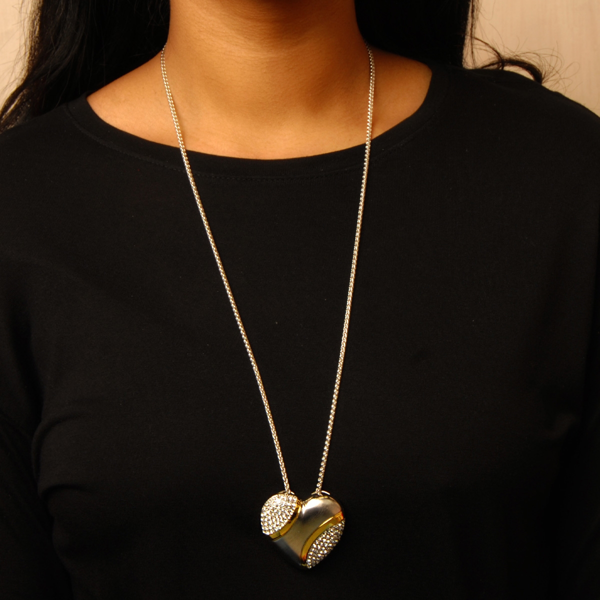 Dress it up or dress it down with our charming "Brimming With Love" neckpiece, showcasing a stunning two-tone heart set with shimmering Swarovski crystal on a sleek 28" designer chain. Nickel and lead free jewellery.