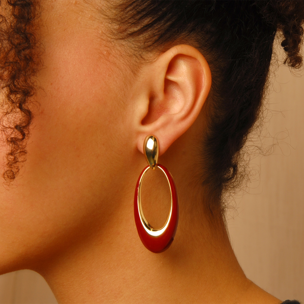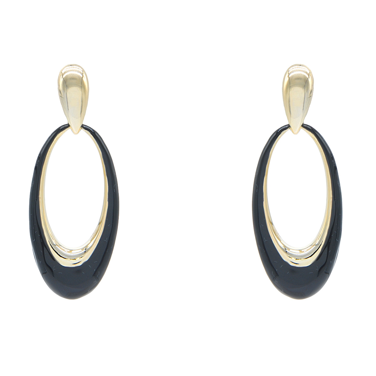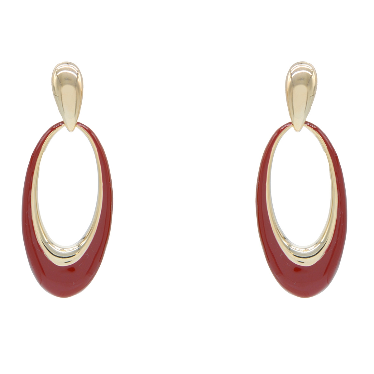 Uniquely eye-catching our "Elongated Trends" earrings boast a sleek oval-shaped design featuring a smooth golden finish and rich hand-painted enamel to give you a chicly stunning fashion staple. Sterling silver posts. Nickel and lead free jewellery.