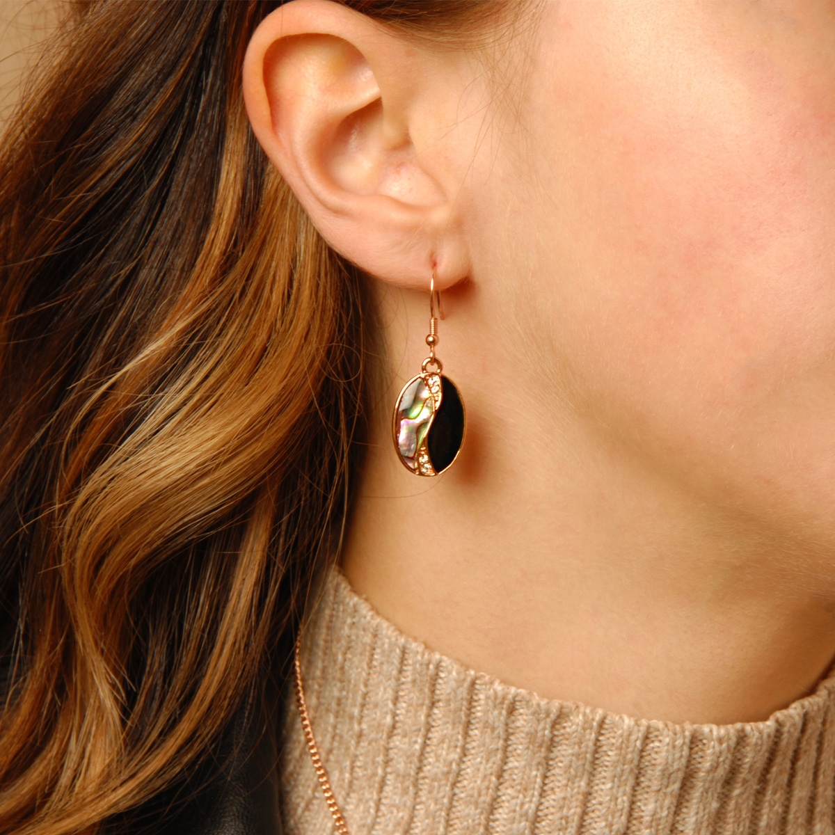 Beautiful and inspiring our stunning "Genuinely Mixed" hook earrings boasts a rich and colorful combination of genuine paua shell and gleaming black onyx with a touch of Swarovski crystal shimmer. Sterling silver hooks. Nickel and lead free jewellery.