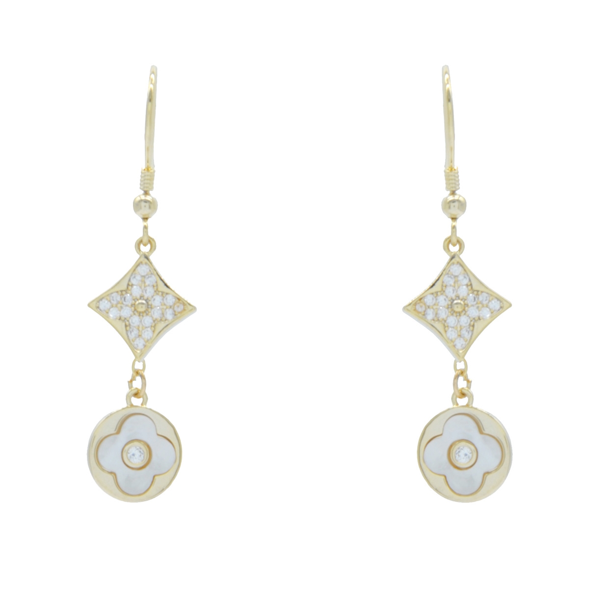 Accent your beautiful style when you wear our "Intricate Luxury" earrings. Boasting stunning mother of pearl and sparkling clear Swarovski crystal in a geometric drop design, these exquisite, handmade fashion accessories are a must to add to your collection! Sterling silver hooks. Nickel and lead free jewellery.