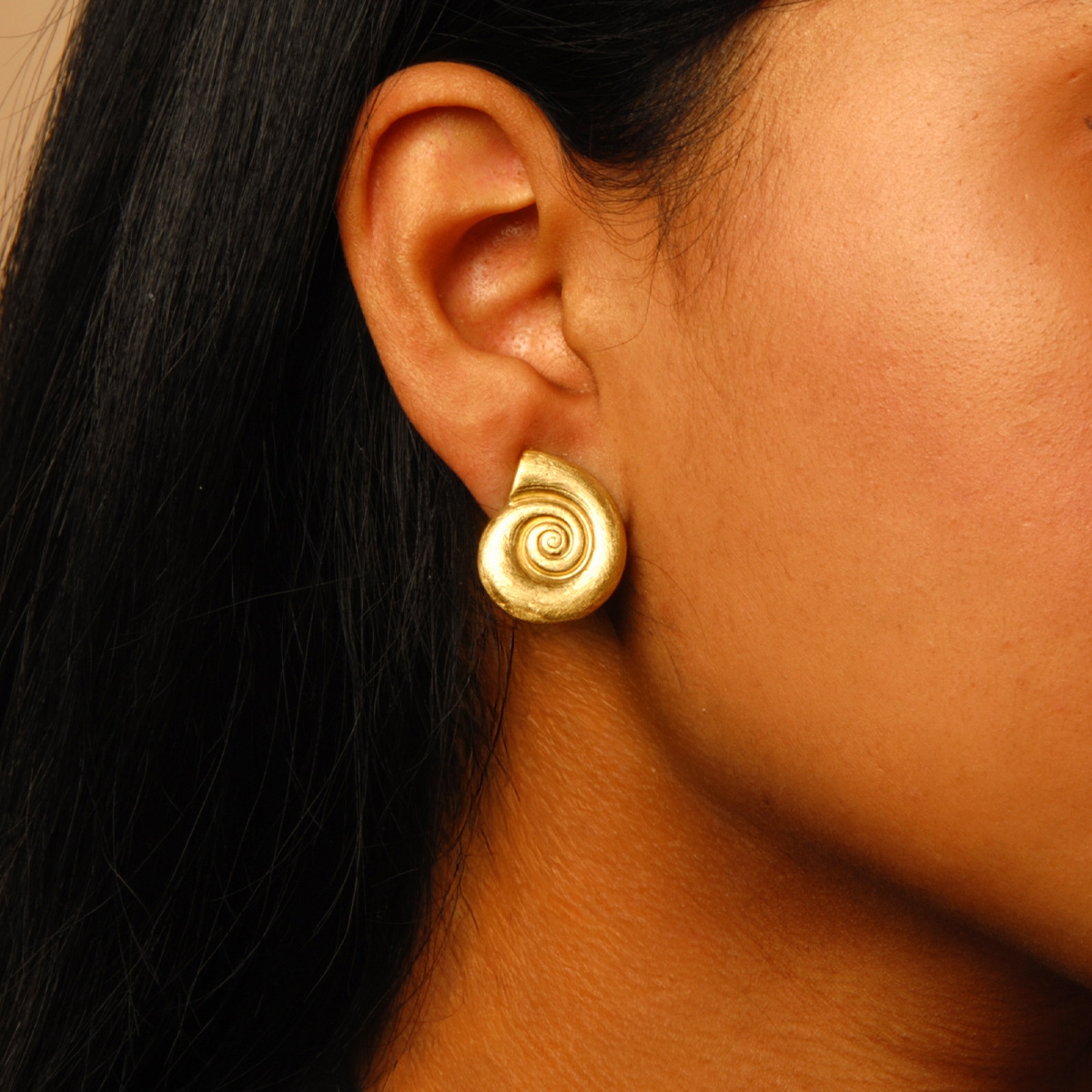 Awaken the senses with eye-catching fashion! Our bold "Modern Spiral" earrings feature whimsical curls finished in rich matte gold. Sterling silver posts. Nickel and lead free jewellery.