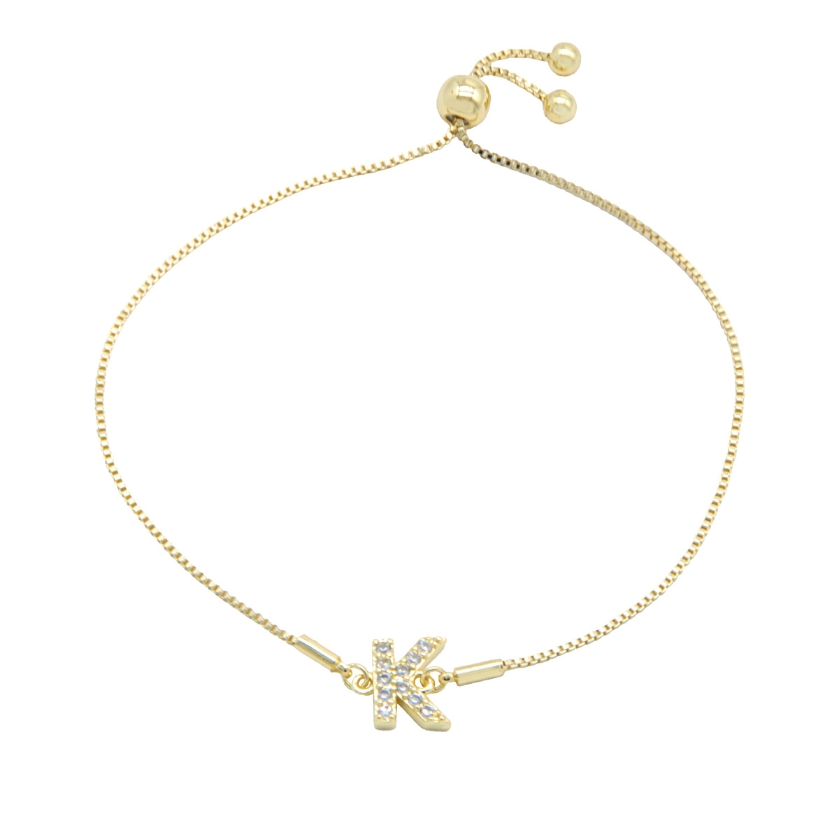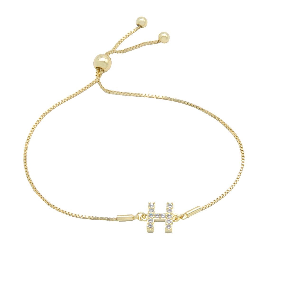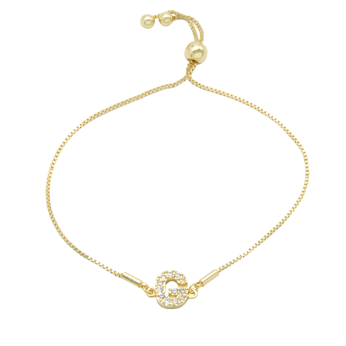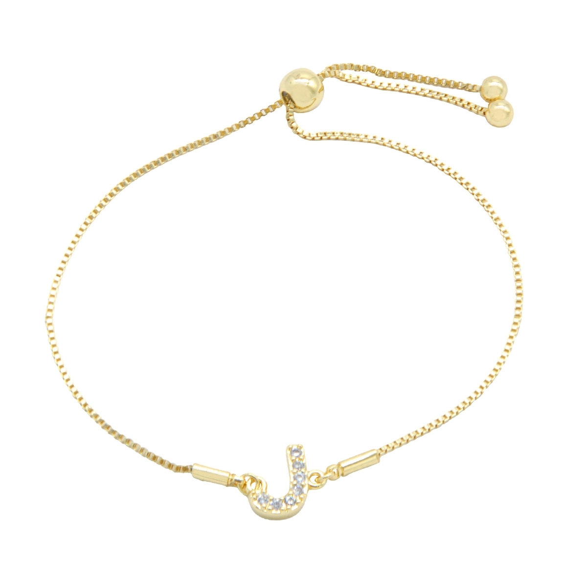 Endlessly wearable, our pretty “Personalized Sparkle” initial bracelet is the perfect everyday go-to FAC accessory. This stunning combination of gleaming gold finish and sparkling AAA cubic zirconia is the perfect way to personalise your look. 7.5" drawstring bracelet. Nickel and lead free jewellery.