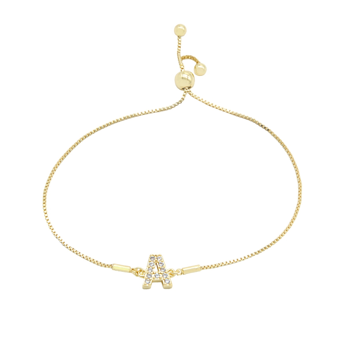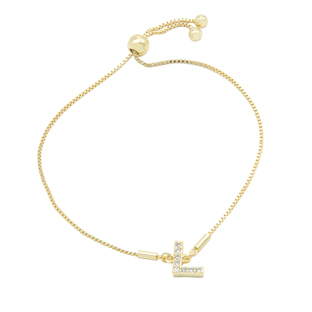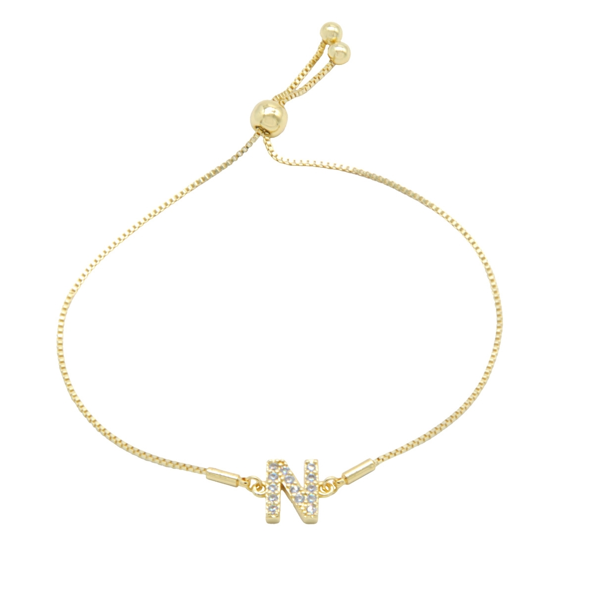 Endlessly wearable, our pretty “Personalized Sparkle” initial bracelet is the perfect everyday go-to FAC accessory. This stunning combination of gleaming gold finish and sparkling AAA cubic zirconia is the perfect way to personalise your look. 7.5" drawstring bracelet. Nickel and lead free jewellery.