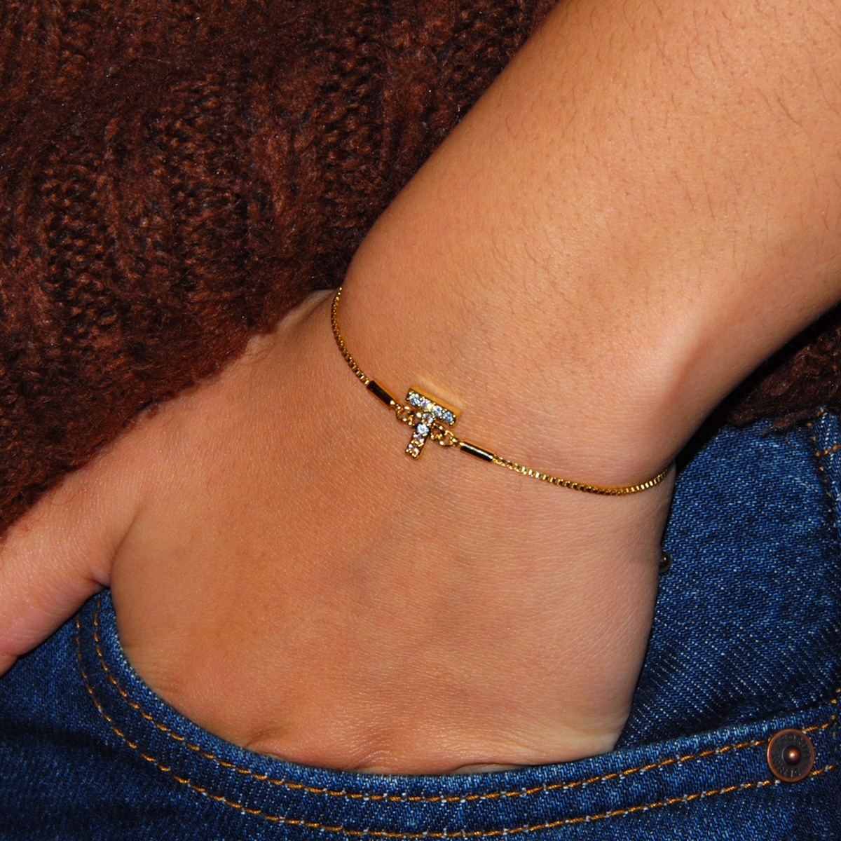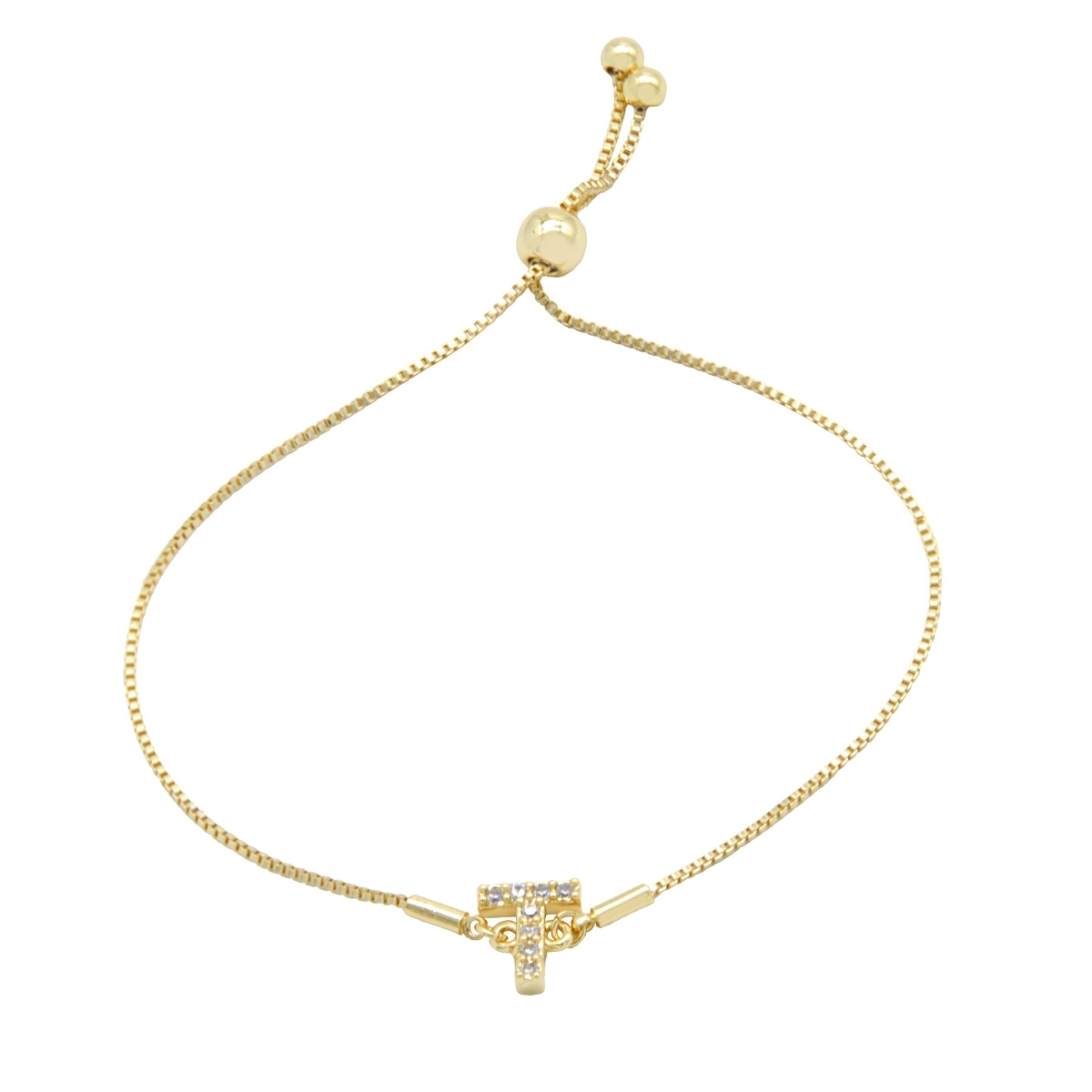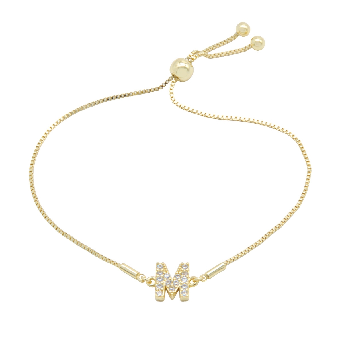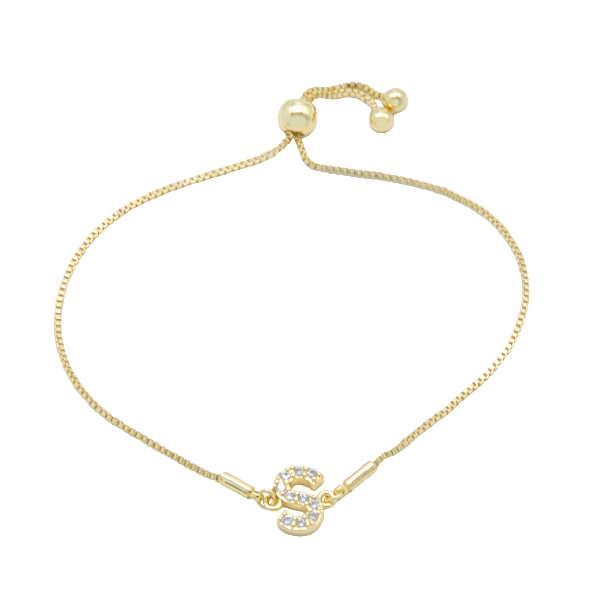 Endlessly wearable, our pretty “Personalized Sparkle” initial bracelet is the perfect everyday go-to FAC accessory. This stunning combination of gleaming gold finish and sparkling AAA cubic zirconia is the perfect way to personalise your look. 7.5" drawstring bracelet. Nickel and lead free jewellery.