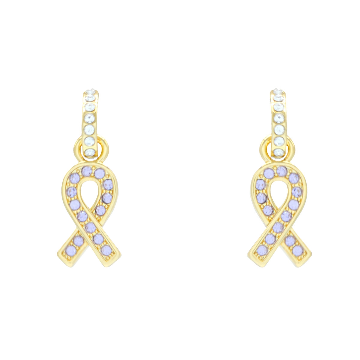 A symbol of support and survival, our beautiful "Strength And Support" stud earrings feature the signature ribbon sparkling with lilac Swarovski crystals. Sterling silver posts. Nickel and lead free jewellery.